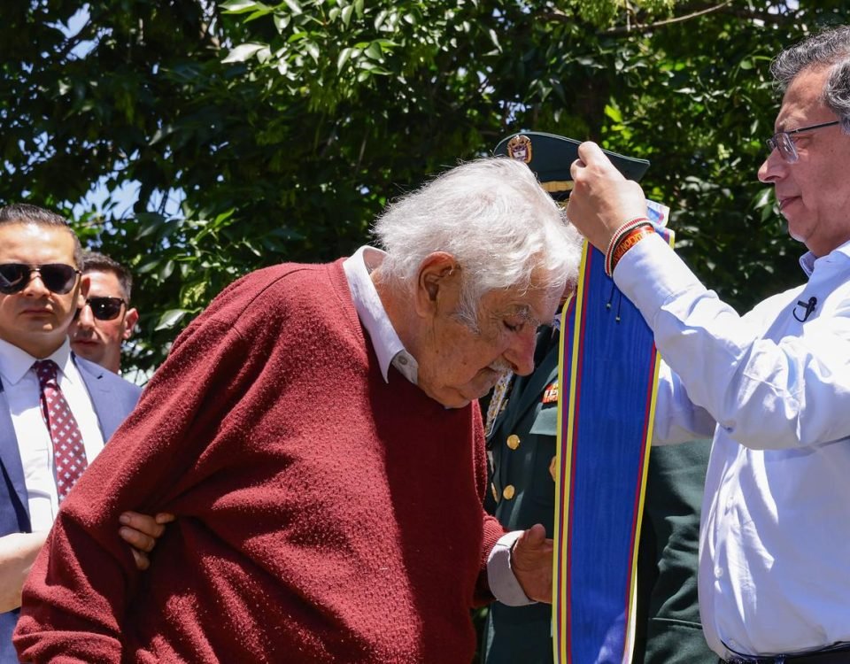 Tensión en Uruguay: Petro condecora a Mujica con la Cruz de Boyacá, pero su reacción ante la bandera del M-19 generó interrogantes.